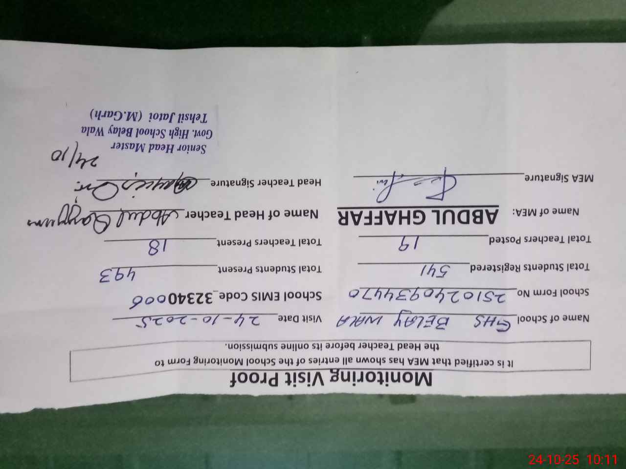 | EMIS Code: 32340006 | Name of School: GHS BELAY WALA | |||