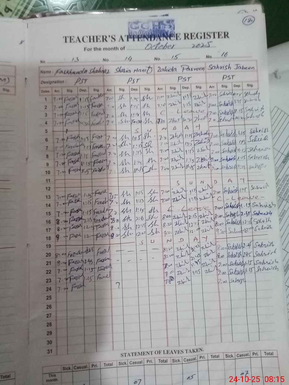 | 36**** | Ab**** Kh**** | Regular | 1 | 0 | 0 | 0 | 0 | 0 | 0 | 0 | 1 | Casual | |