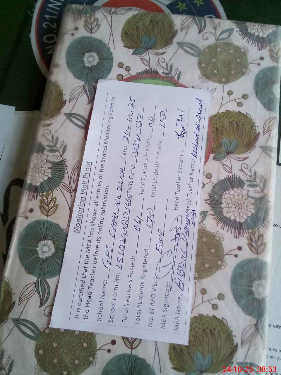 | EMIS Code: 31340337 | Name of School: GPS CHAK NO 21/NP | |||