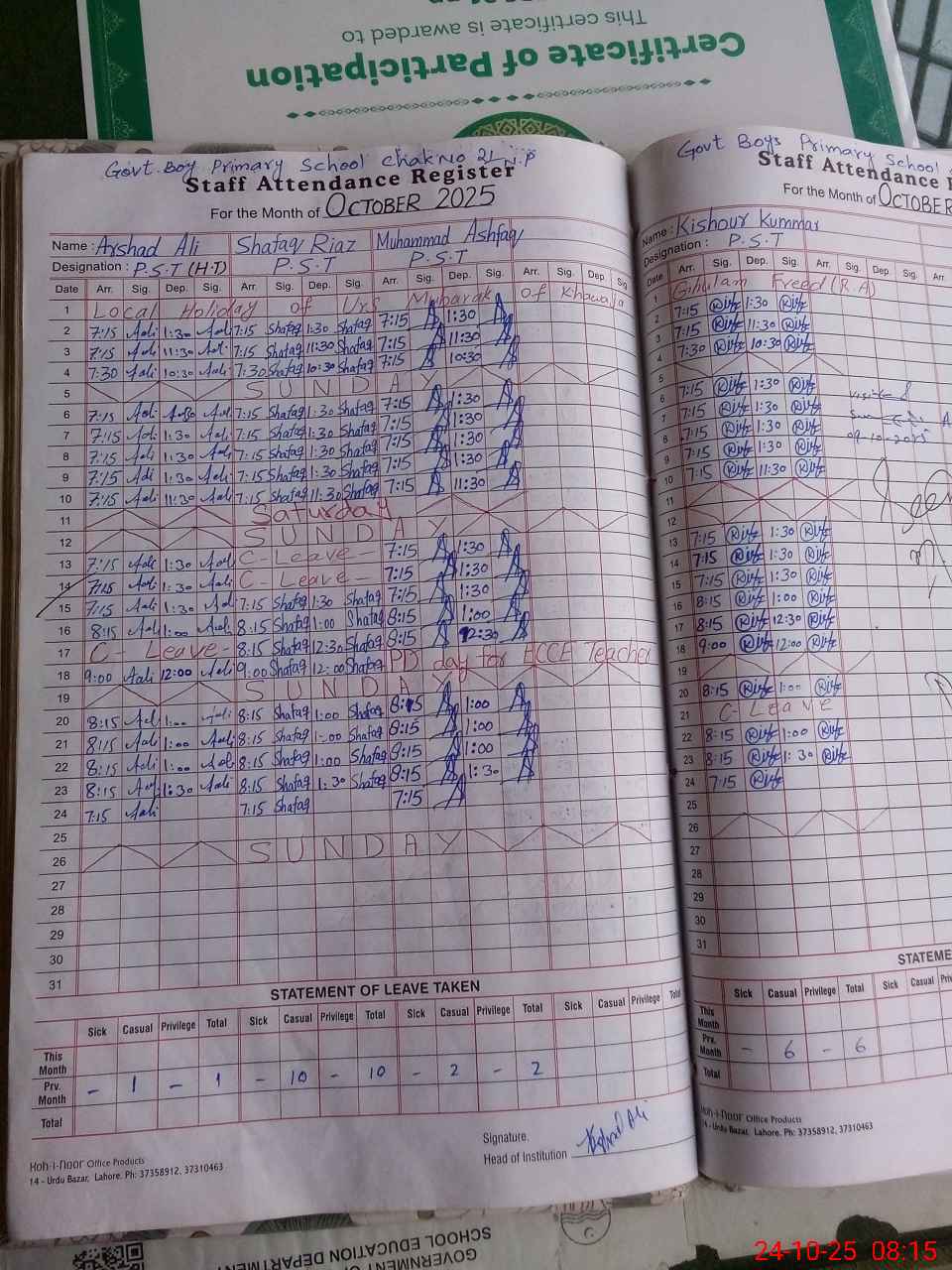 | Name: Ar**** Al**** As**** Designation: (School Headmaster's/Headmistress's) PST Phone/Cell Number: 03**** |
