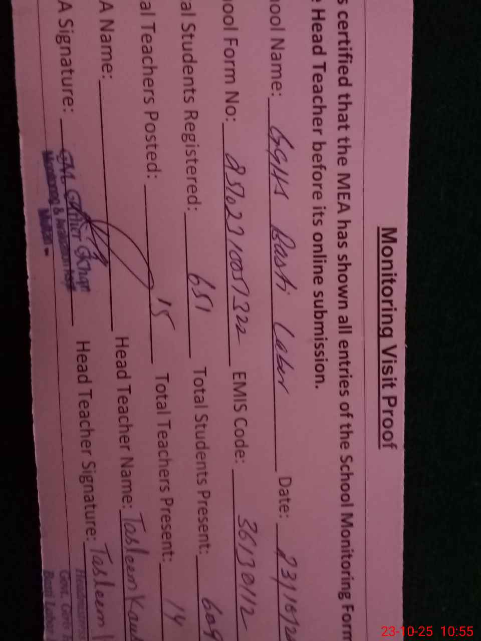 | Monitoring Date: 23-10-2025 | Start Time: 23-10-2025 10:05 AM | End Time: 23-10-2025 10:55 AM | Name of MEA: MU**** AT**** KH**** | |