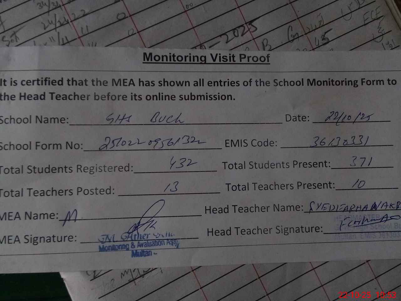 | EMIS Code: 36130331 | Name of School: GHS BUCH P/O KHOKHAR | |||
