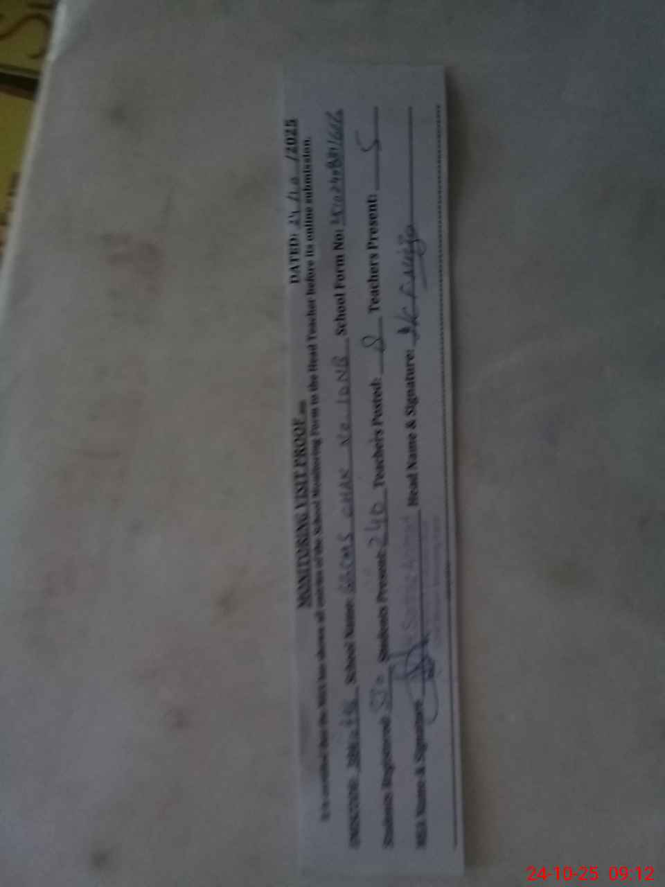 | Attendance Register | Head Teacher | MEA with School | Visit Proof |
