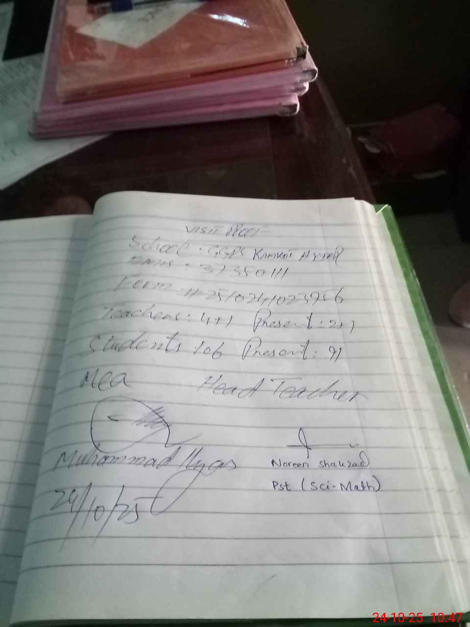 | Certified that this School was Inspected by the Undersigned MEA/DMO Today and the Information Stated Above is as Per Record. | |||||