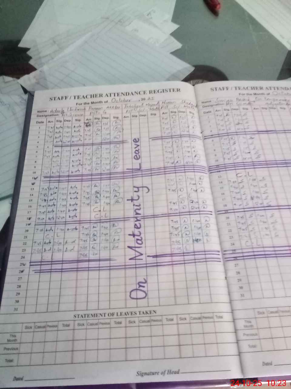 | 61**** | Ta**** Ma**** | PST | Regular | 0 | 0 | 0 | 0 | 0 | 0 | 0 | 0 | 0 | Maternity |