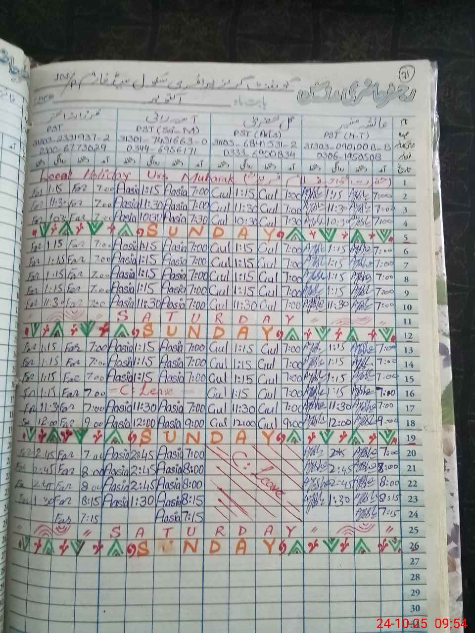 | Leave | Duty | Absent | Maternity | Medical | Ex- Pak |