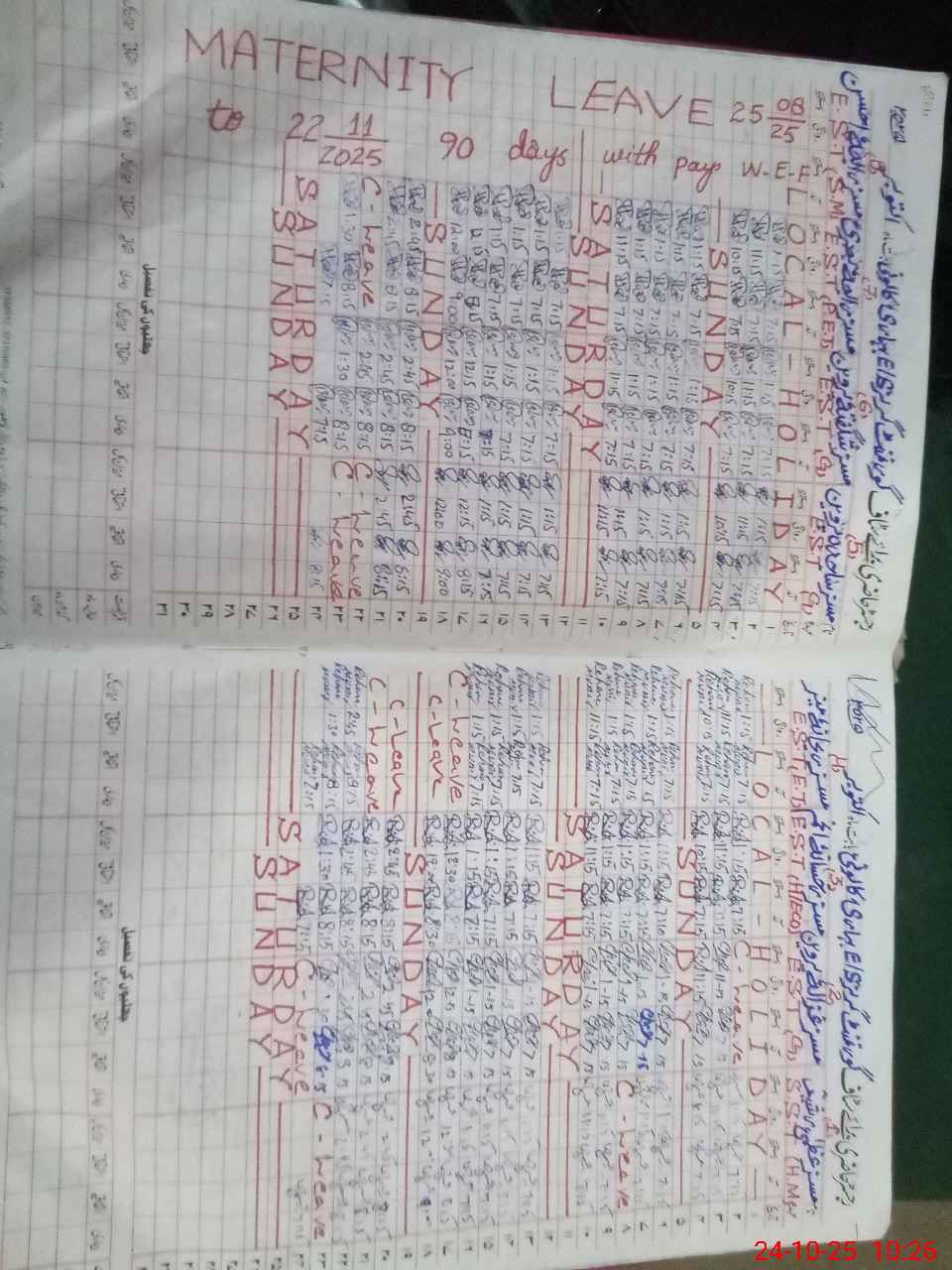 | Leave | Duty | Absent | Maternity | Medical | Ex- Pak |