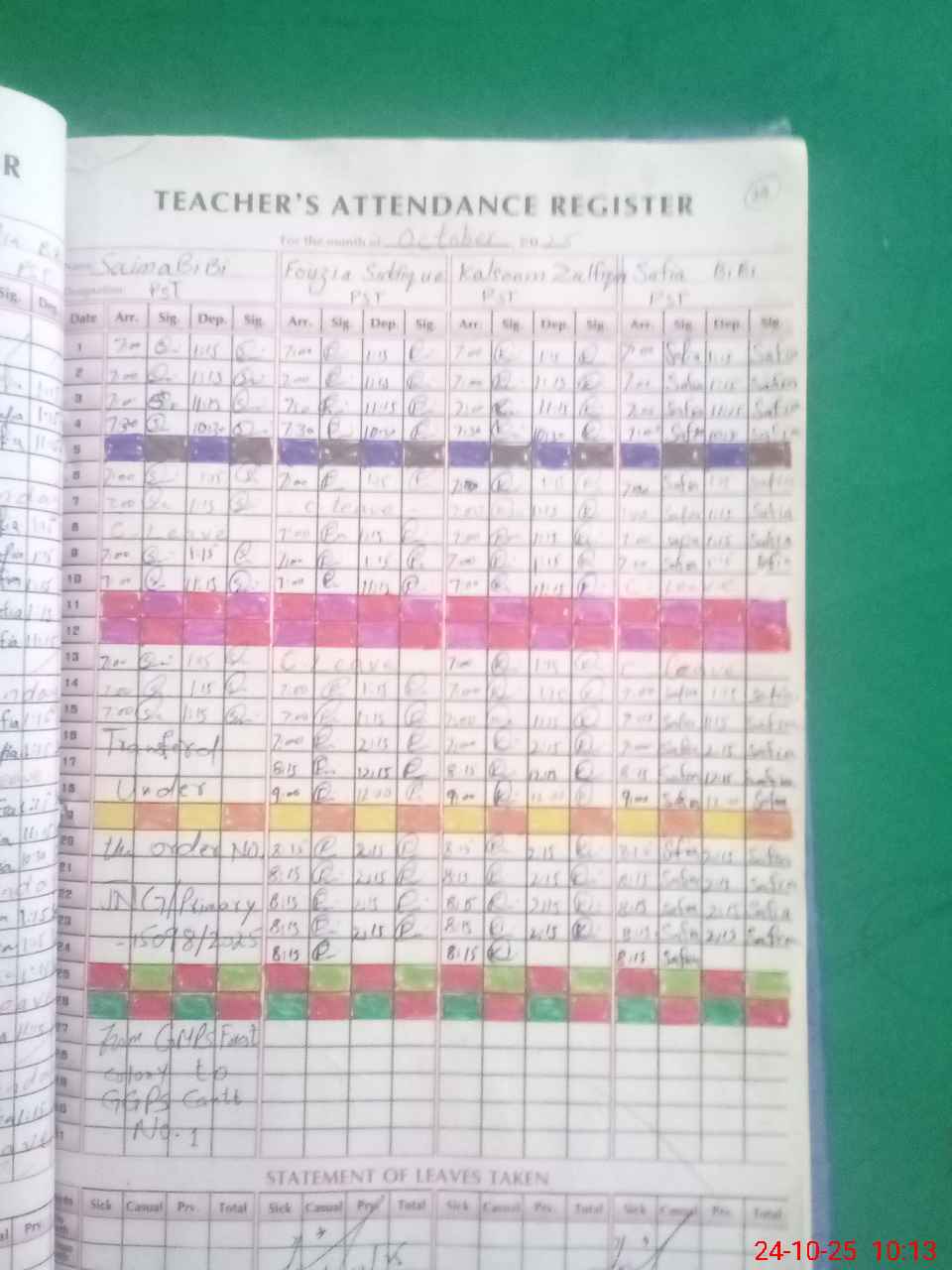| Leave | Duty | Absent | Maternity | Medical | Ex- Pak |