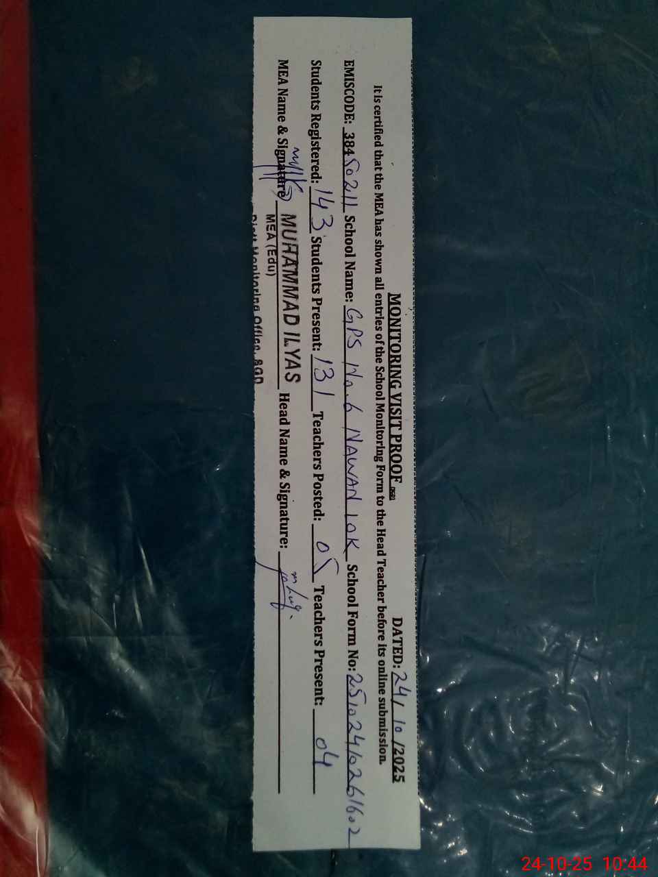 | EMIS Code: 38450211 | Name of School: GPS NO.6 NAWAN LOK SAHIWAL | |||