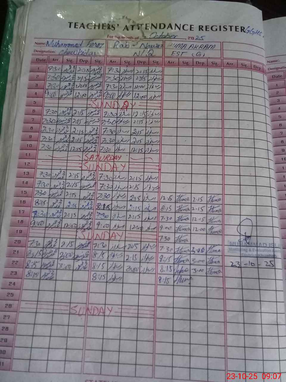 | CNIC | Full Name | Designation | R/C | Absence During Last Calender Month |