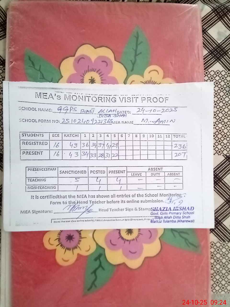 | EMIS Code: 36430379 | Name of School: GGPS BASTI ALLAH DITTAH SHAH, TULAMBA | |||