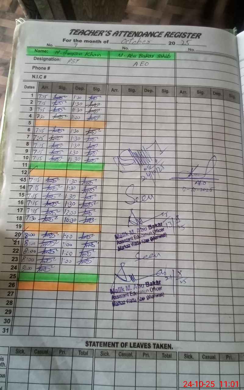 | Name: Mu**** Bi**** Kh**** Designation: (School Headmaster's/Headmistress's) PST Phone/Cell Number: 03**** |