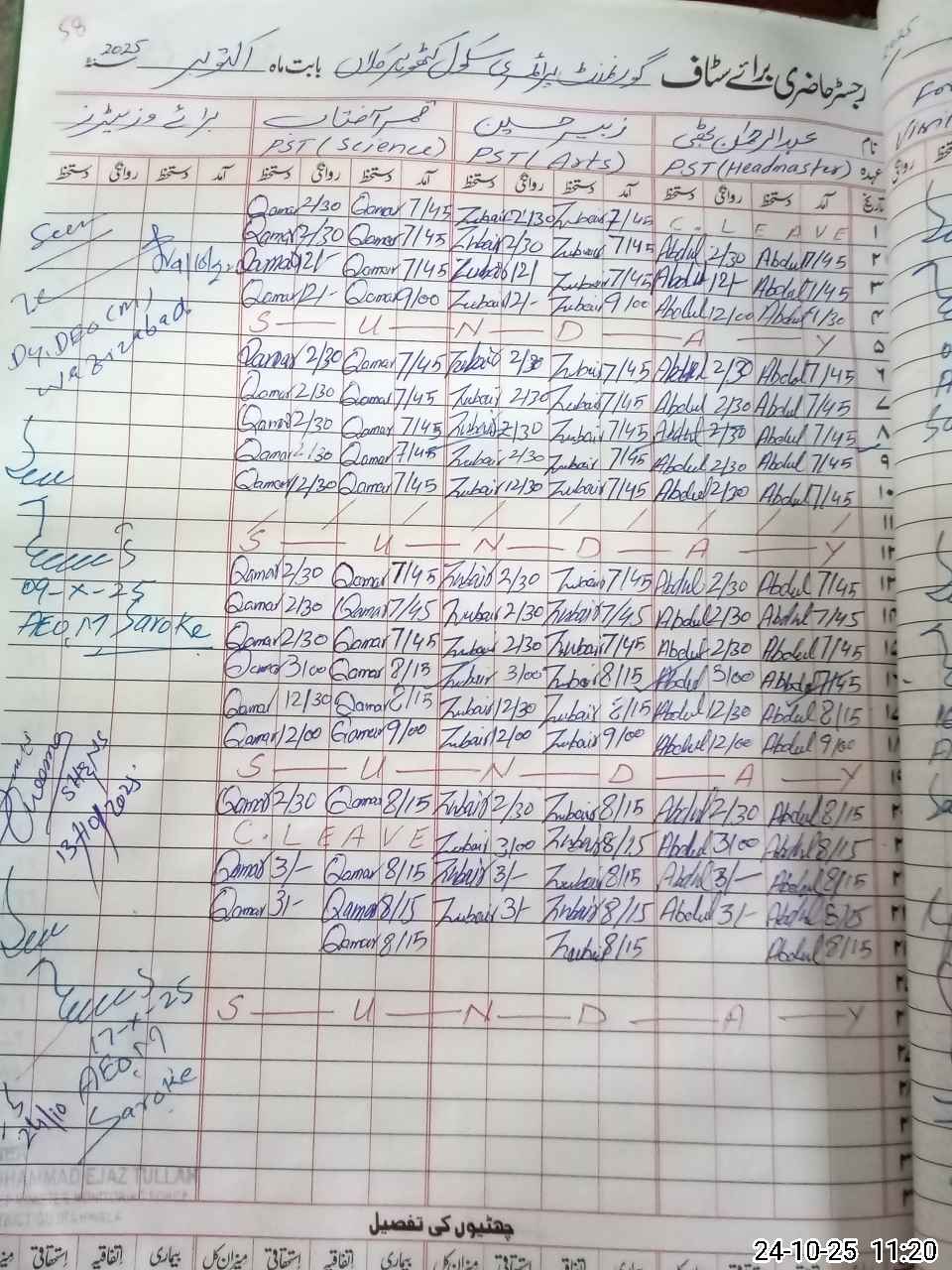 | Name: Ab**** Re**** Designation: (School Headmaster's/Headmistress's) PST Phone/Cell Number: 03**** |