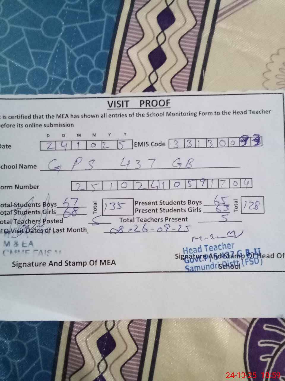 | EMIS Code: 33130093 | Name of School: GPS CHAK 437 GB N PUR SAMUNDRI | |||