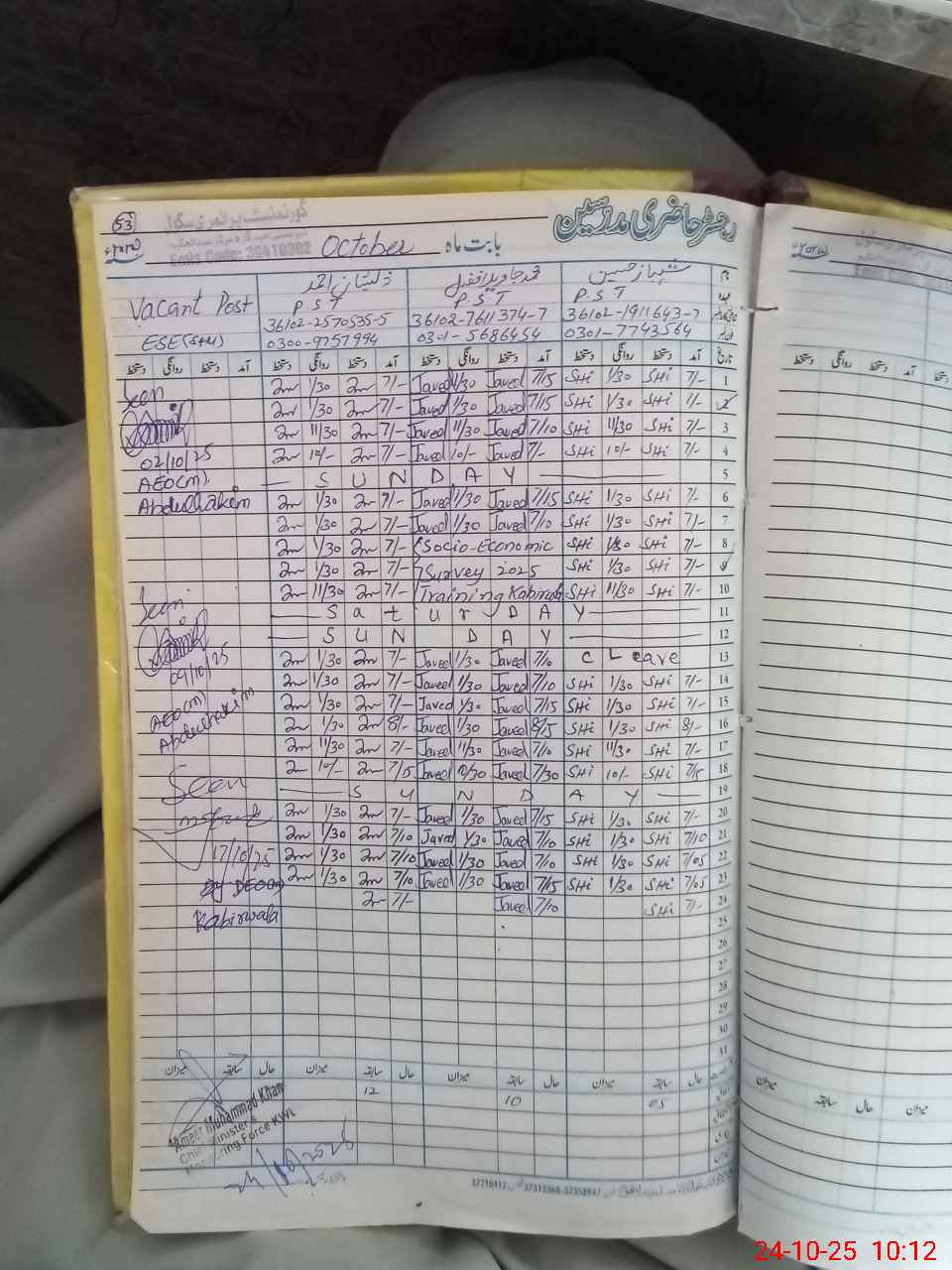 | Name: SH**** HU**** Designation: (School Headmaster's/Headmistress's) PST Phone/Cell Number: 03**** |