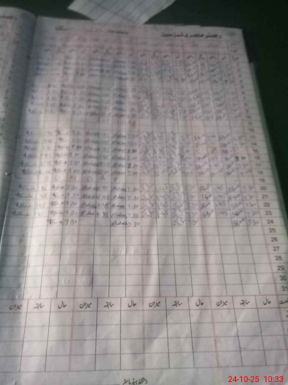| CNIC | Full Name | Designation | R/C | Absence During Last Calender Month |