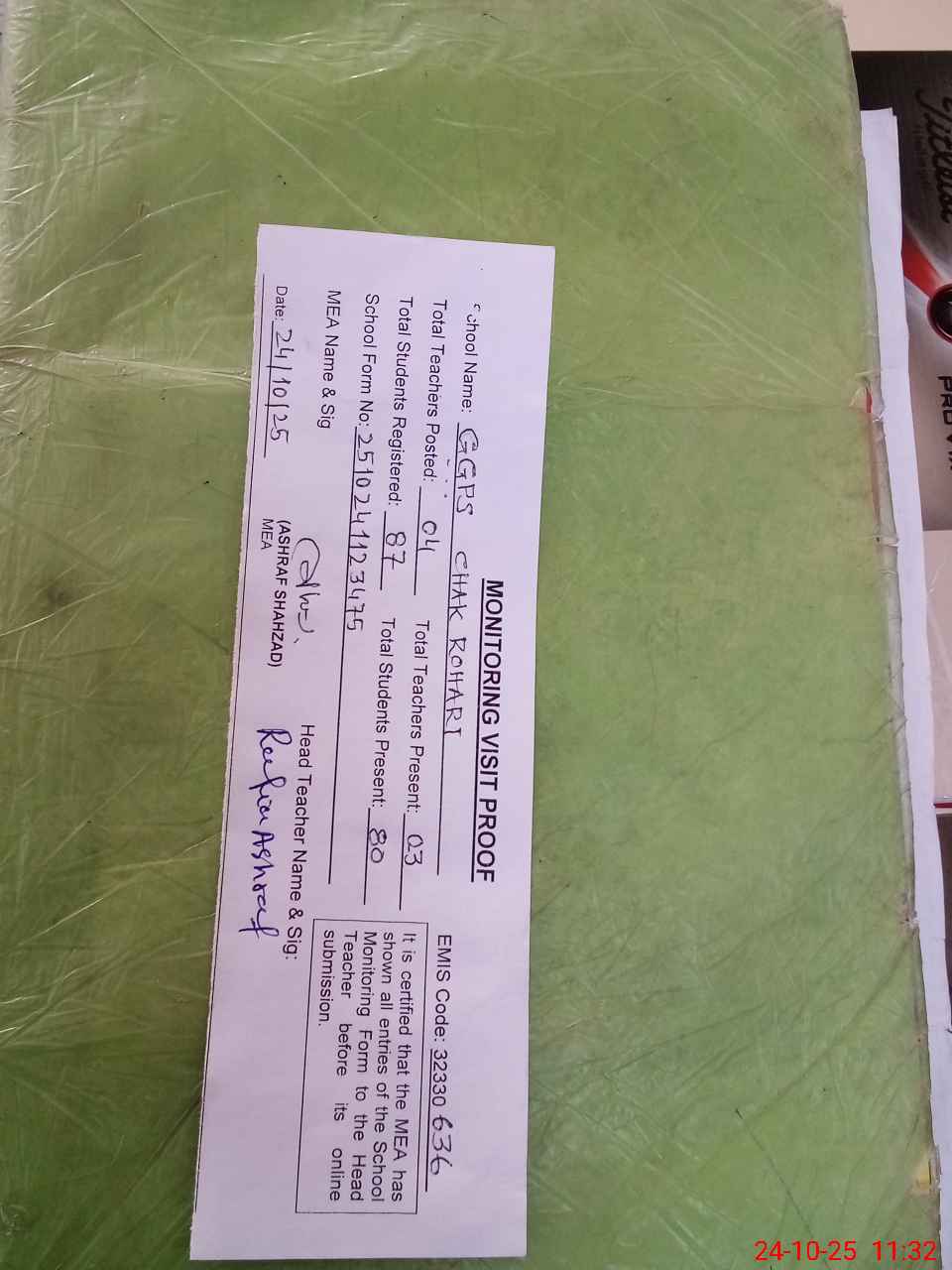 | EMIS Code: 32330636 | Name of School: GGPS CHAK ROHARI | |||