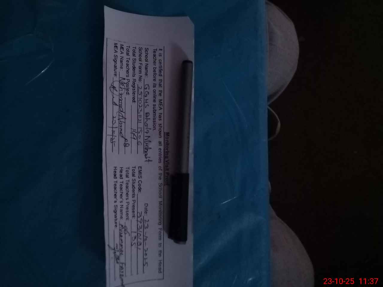 | Attendance Register | Head Teacher | MEA with School | Visit Proof |
