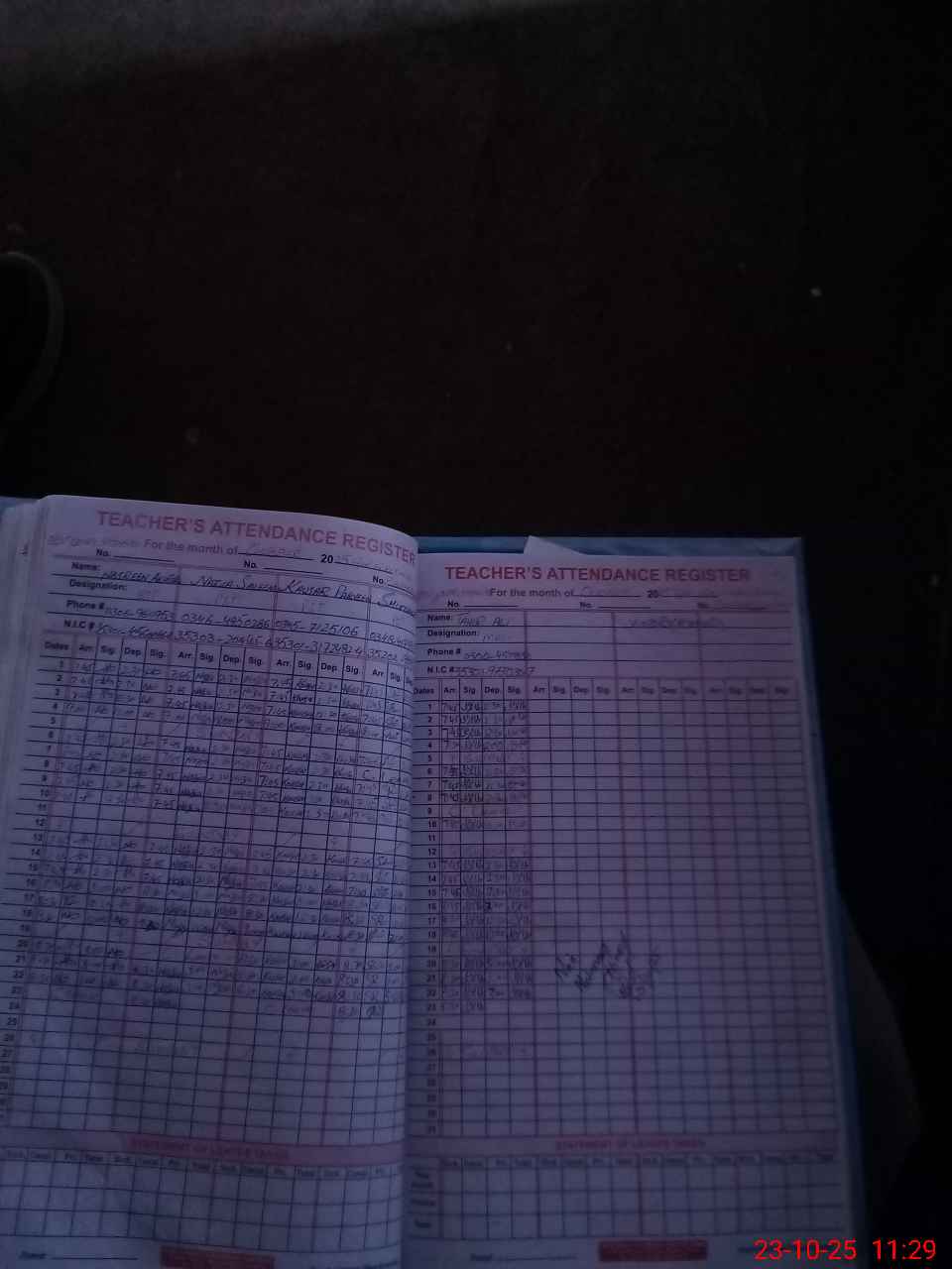 | CNIC | Full Name | Designation | R/C | Absence During Last Calender Month |