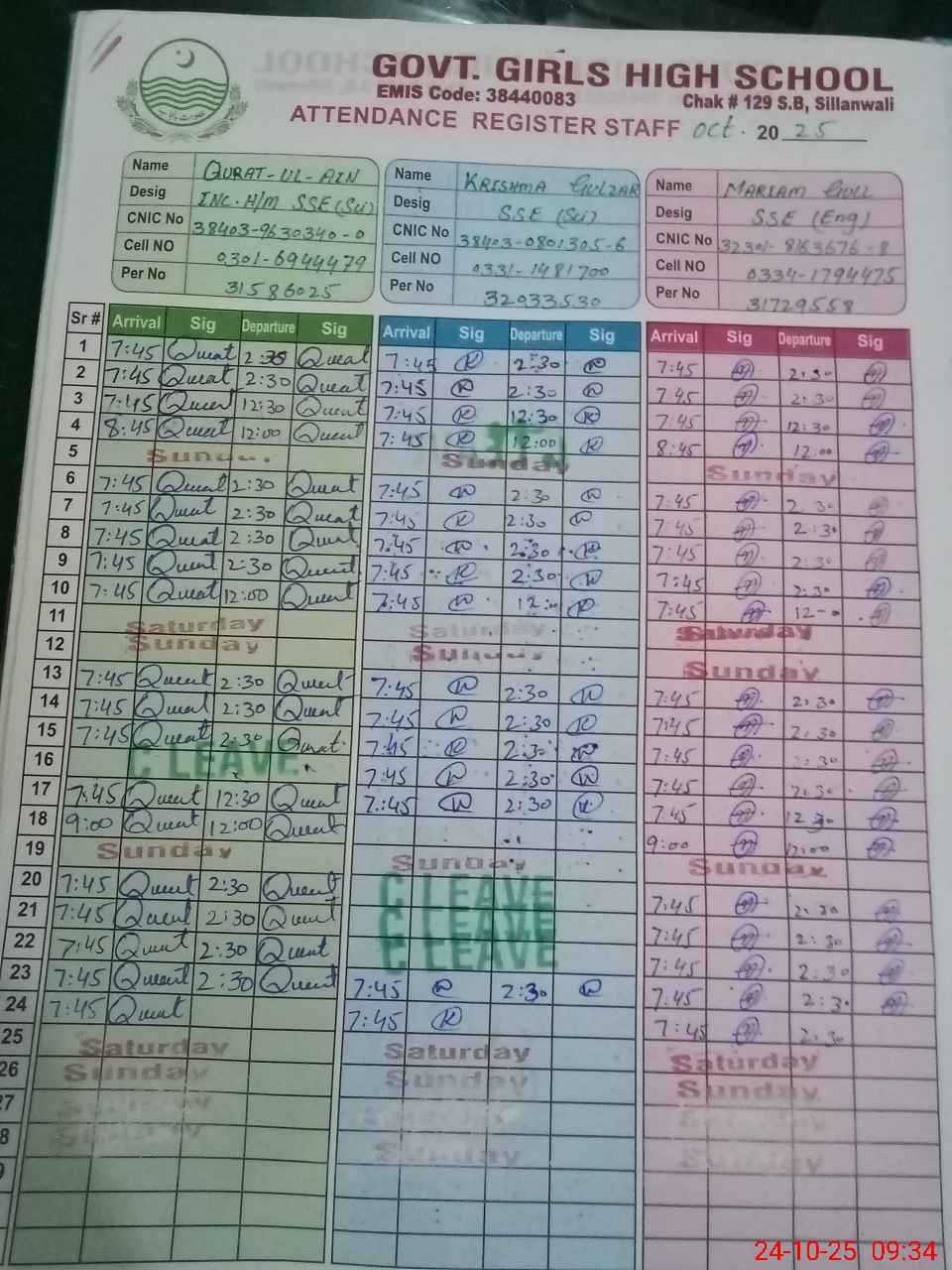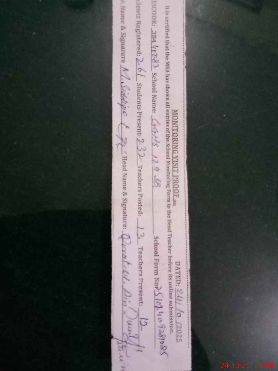 | EMIS Code: 38440083 | Name of School: GGHS CHAK NO 129 SB | |||
