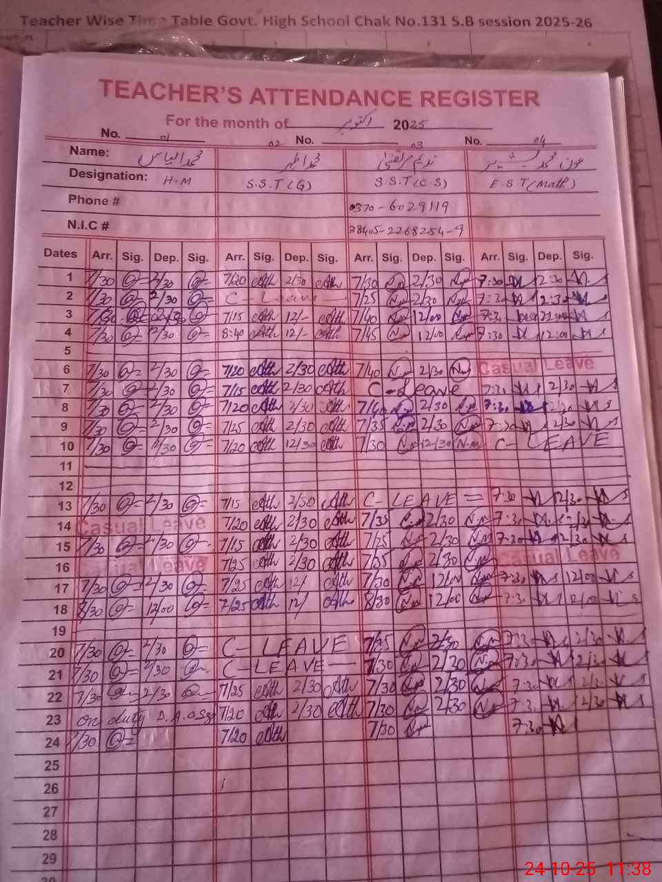 | Name: Mu**** Il**** Designation: (School Headmaster's/Headmistress's) SST SCIENCE Phone/Cell Number: 03**** |