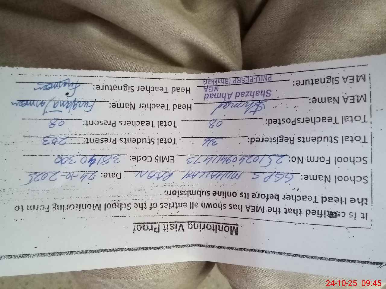 | Monitoring Date: 24-10-2025 | Start Time: 24-10-2025 09:25 AM | End Time: 24-10-2025 09:45 AM | Name of MEA: SH**** AH**** | |