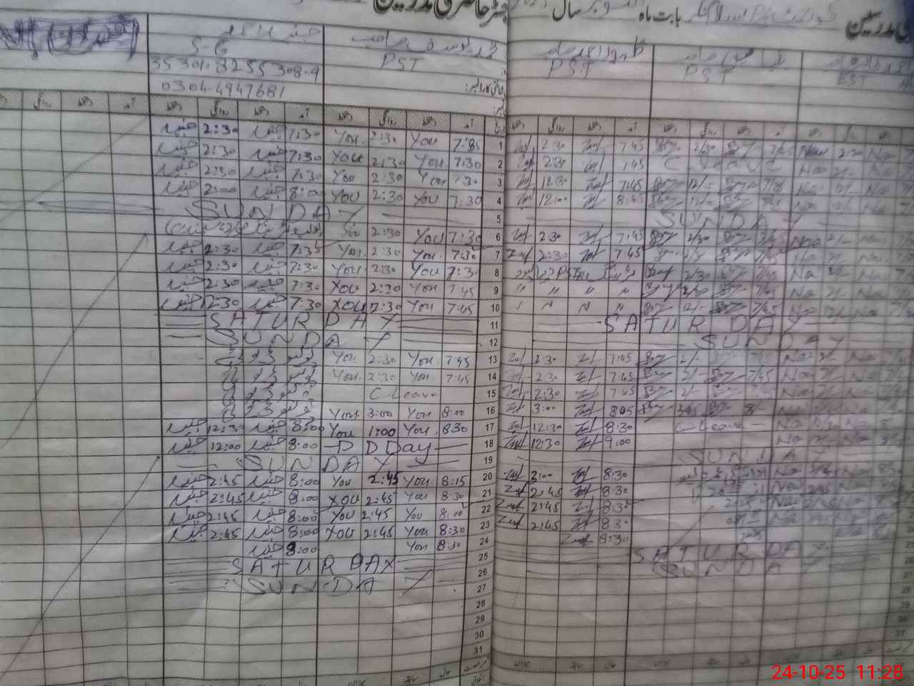 | Leave | Duty | Absent | Maternity | Medical | Ex- Pak |