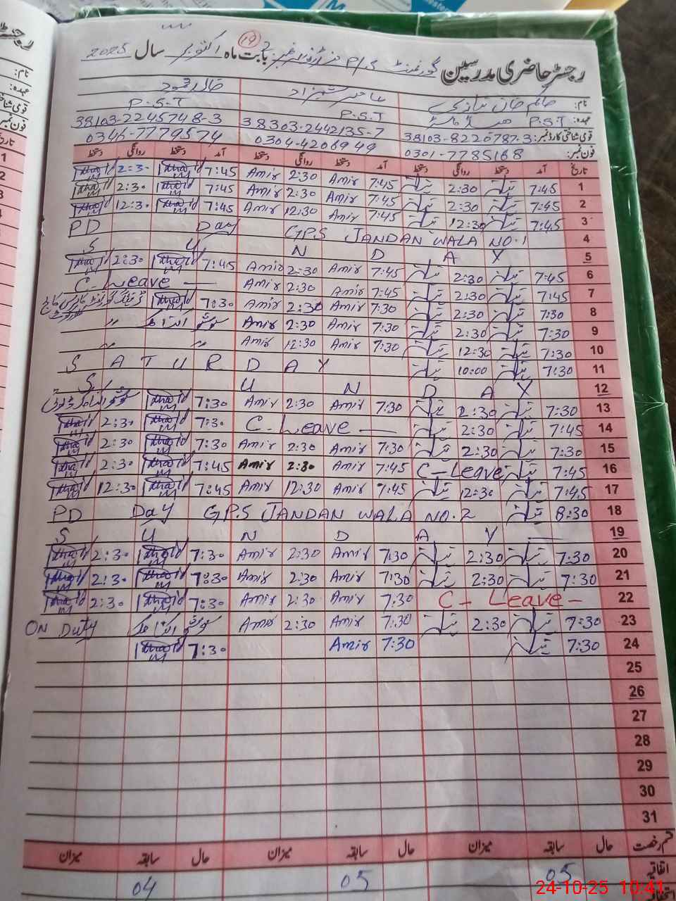 | Leave | Duty | Absent | Maternity | Medical | Ex- Pak |
