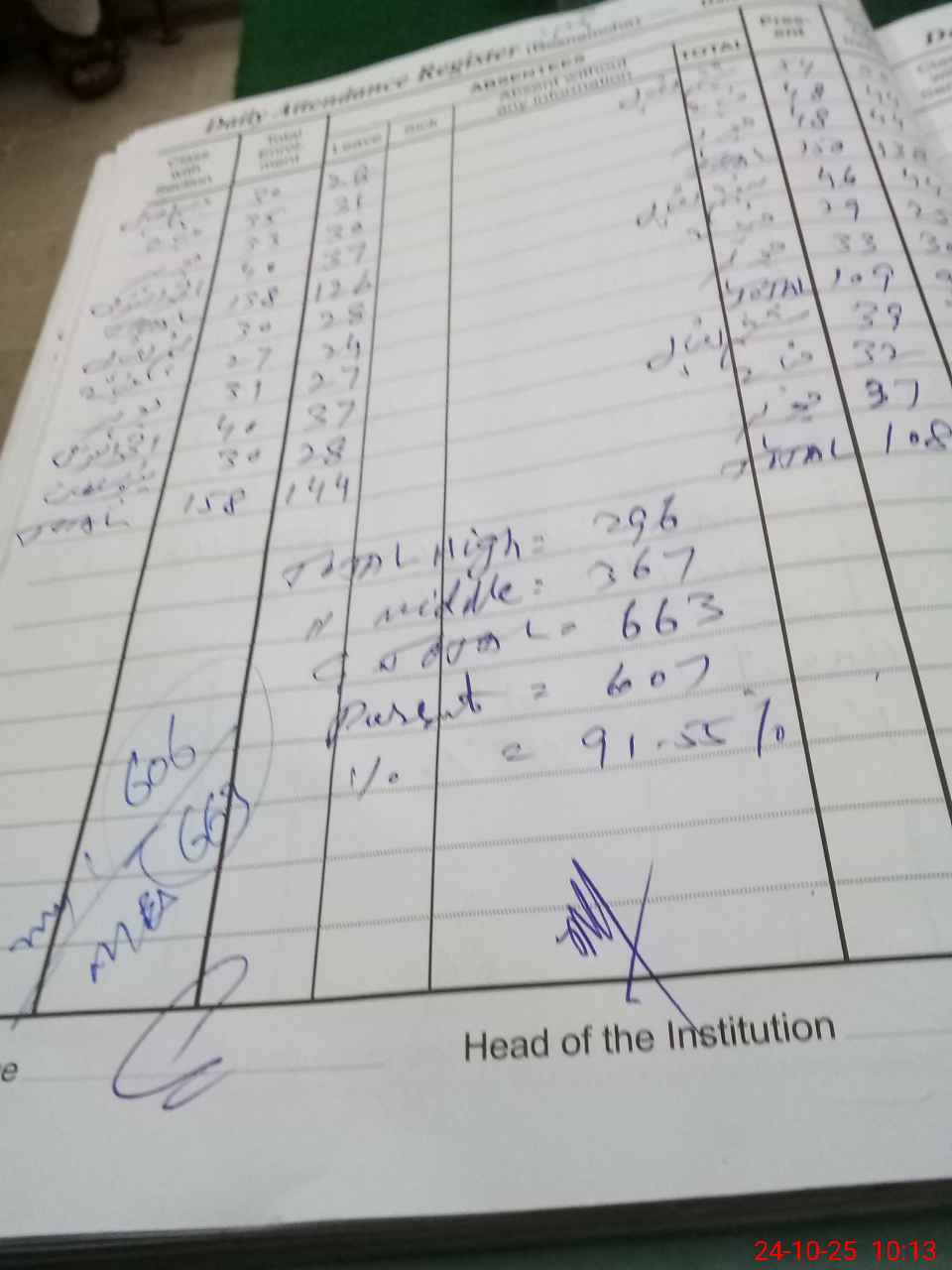 | Total Students Present | 0 | 0 | 0 | 0 | 0 | 0 | 0 | 0 | 99 | 100 | 138 | 143 | 126 | 606 | ||
