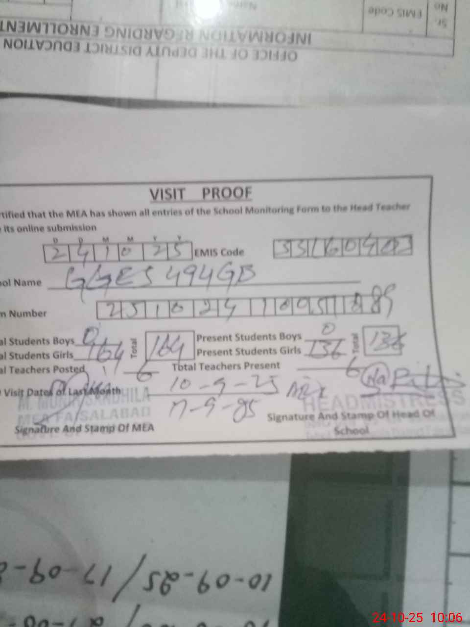 | Certified that this School was Inspected by the Undersigned MEA/DMO Today and the Information Stated Above is as Per Record. | |||||