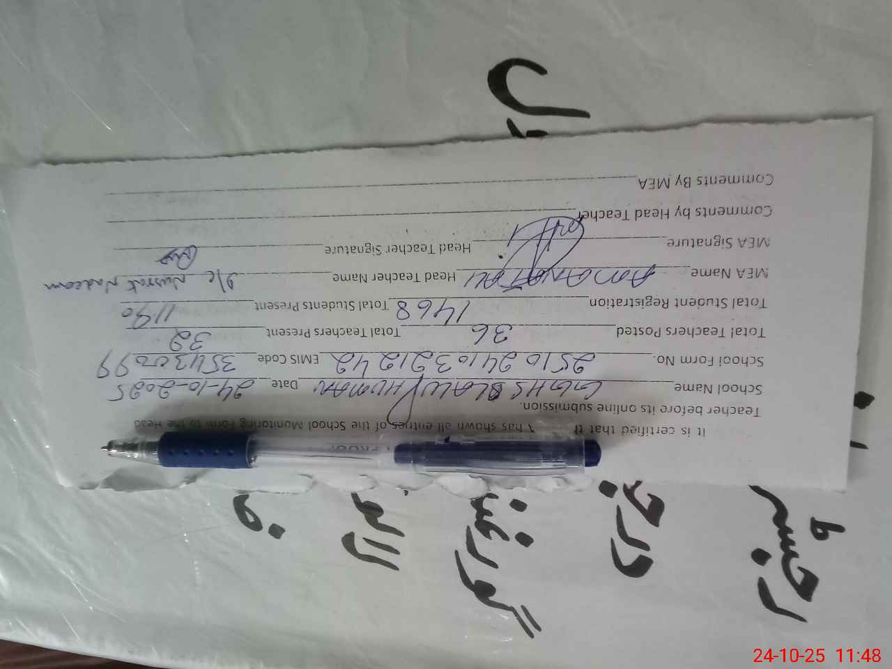 | Certified that this School was Inspected by the Undersigned MEA/DMO Today and the Information Stated Above is as Per Record. | |||||