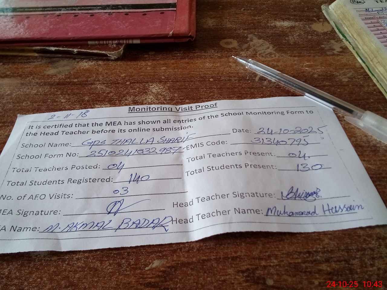 | EMIS Code: 31340795 | Name of School: GPS THALLA SHARIF | |||