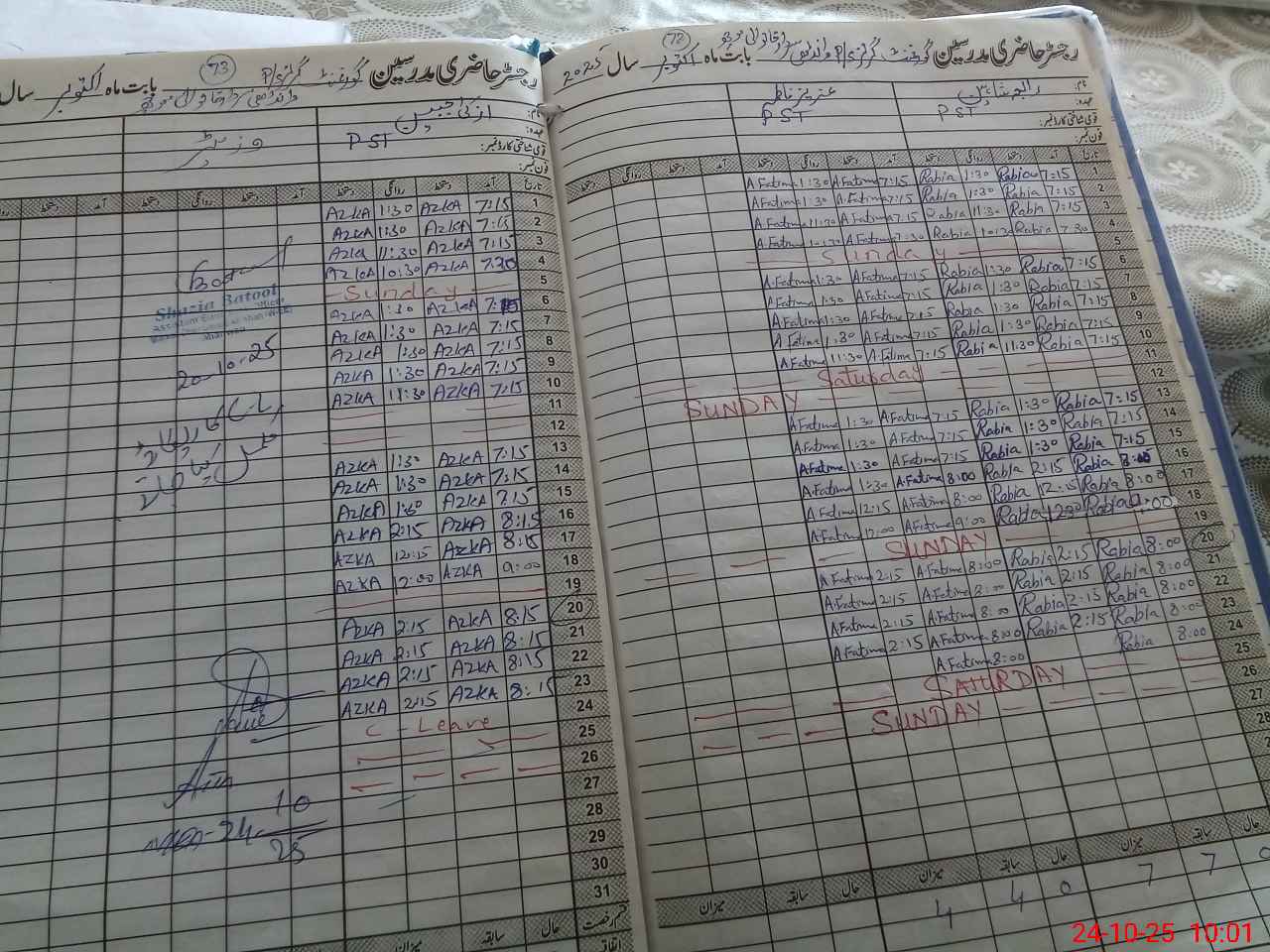 | CNIC | Full Name | Designation | R/C | Absence During Last Calender Month |