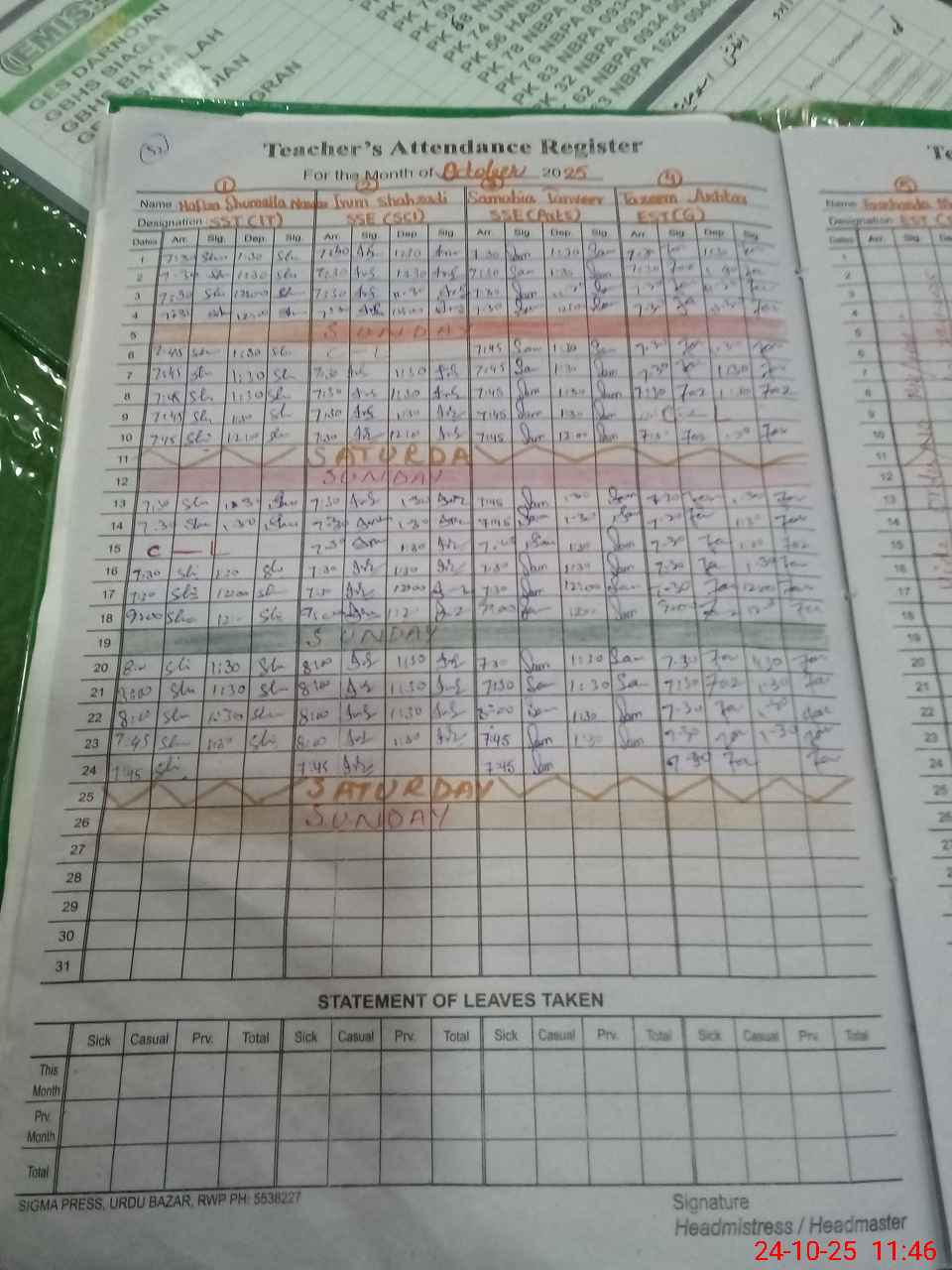 | Leave | Duty | Absent | Maternity | Medical | Ex- Pak |