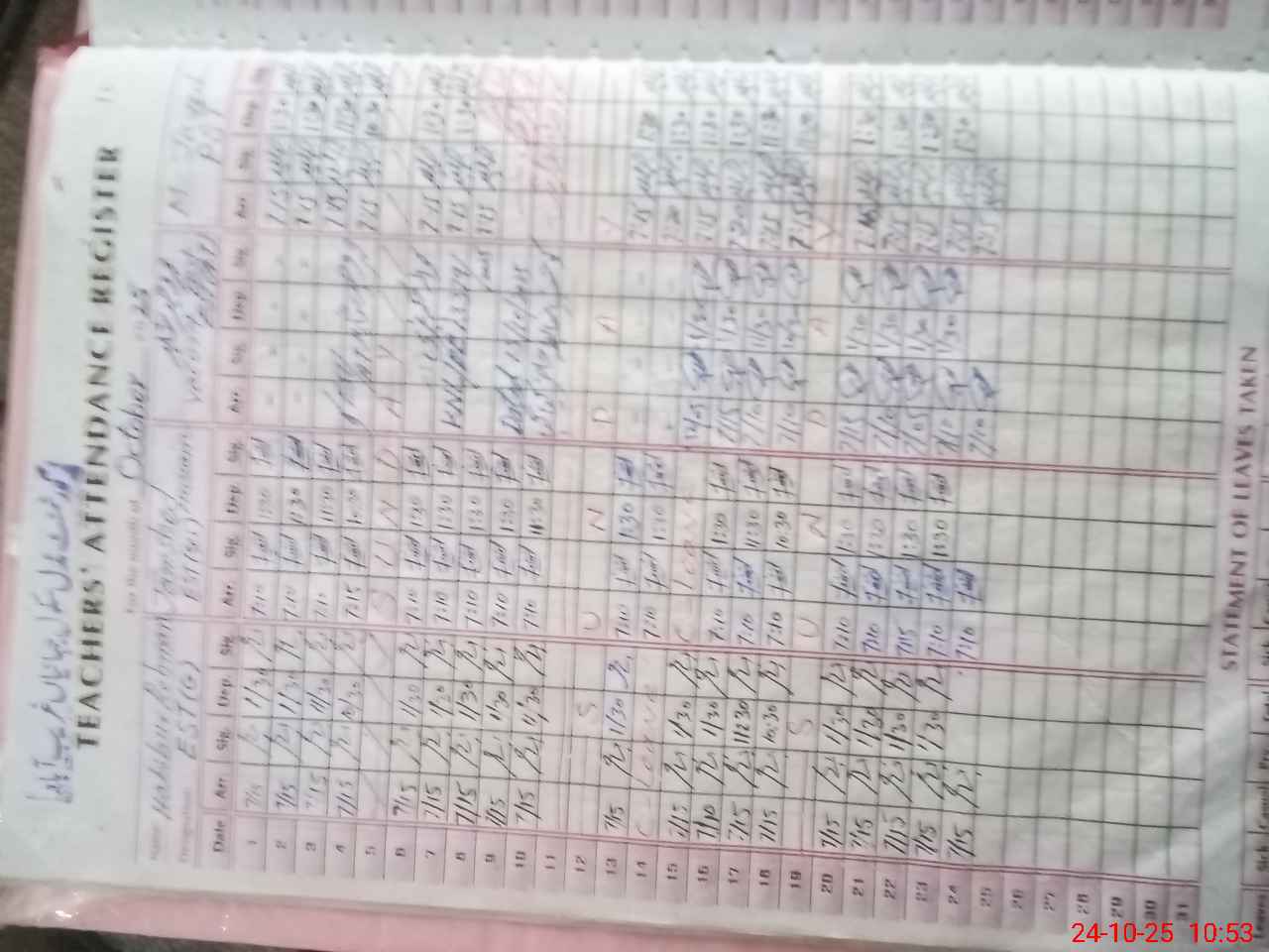 | Leave | Duty | Absent | Maternity | Medical | Ex- Pak |