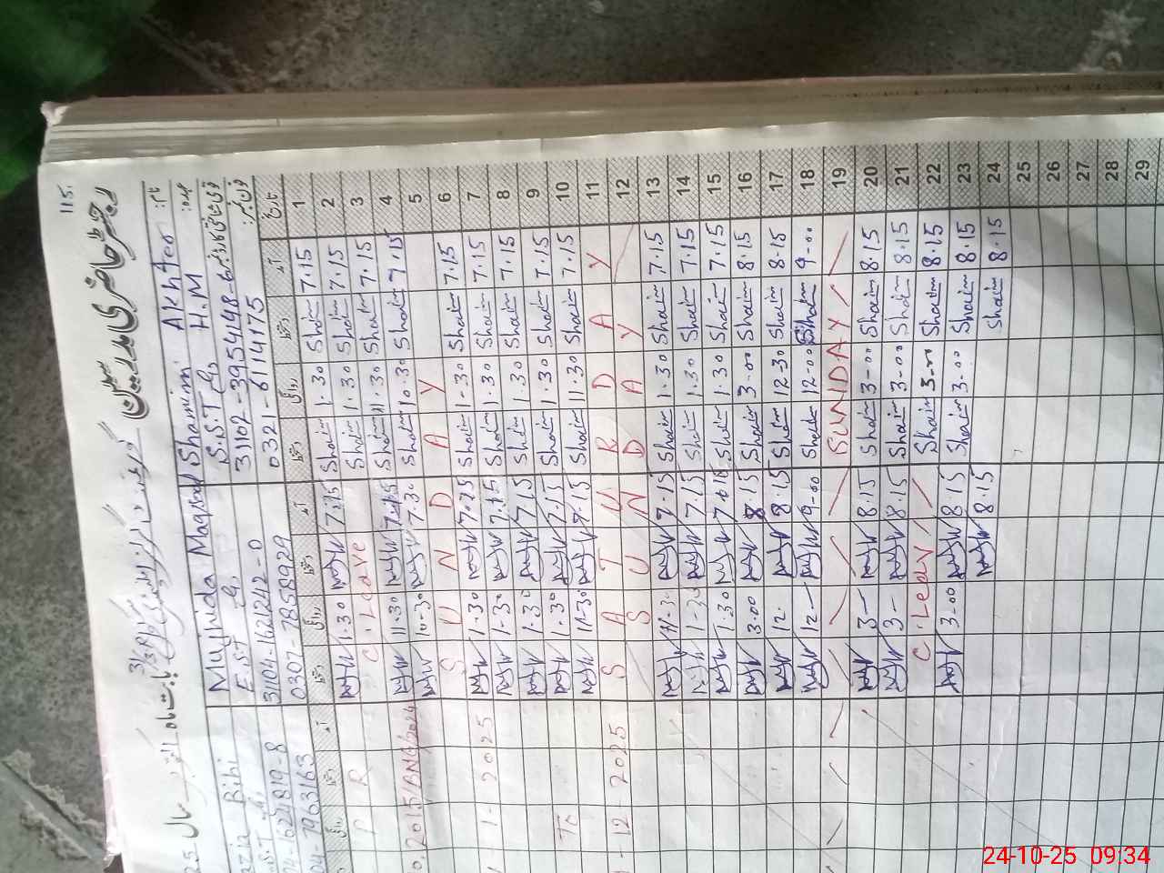 | CNIC | Full Name | Designation | R/C | Absence During Last Calender Month |