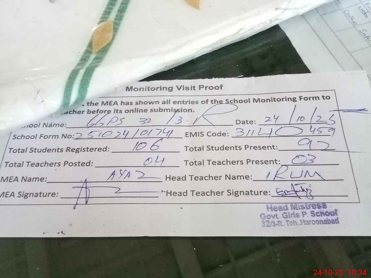 | EMIS Code: 31140459 | Name of School: GGPS CHAK NO 32 3R | |||