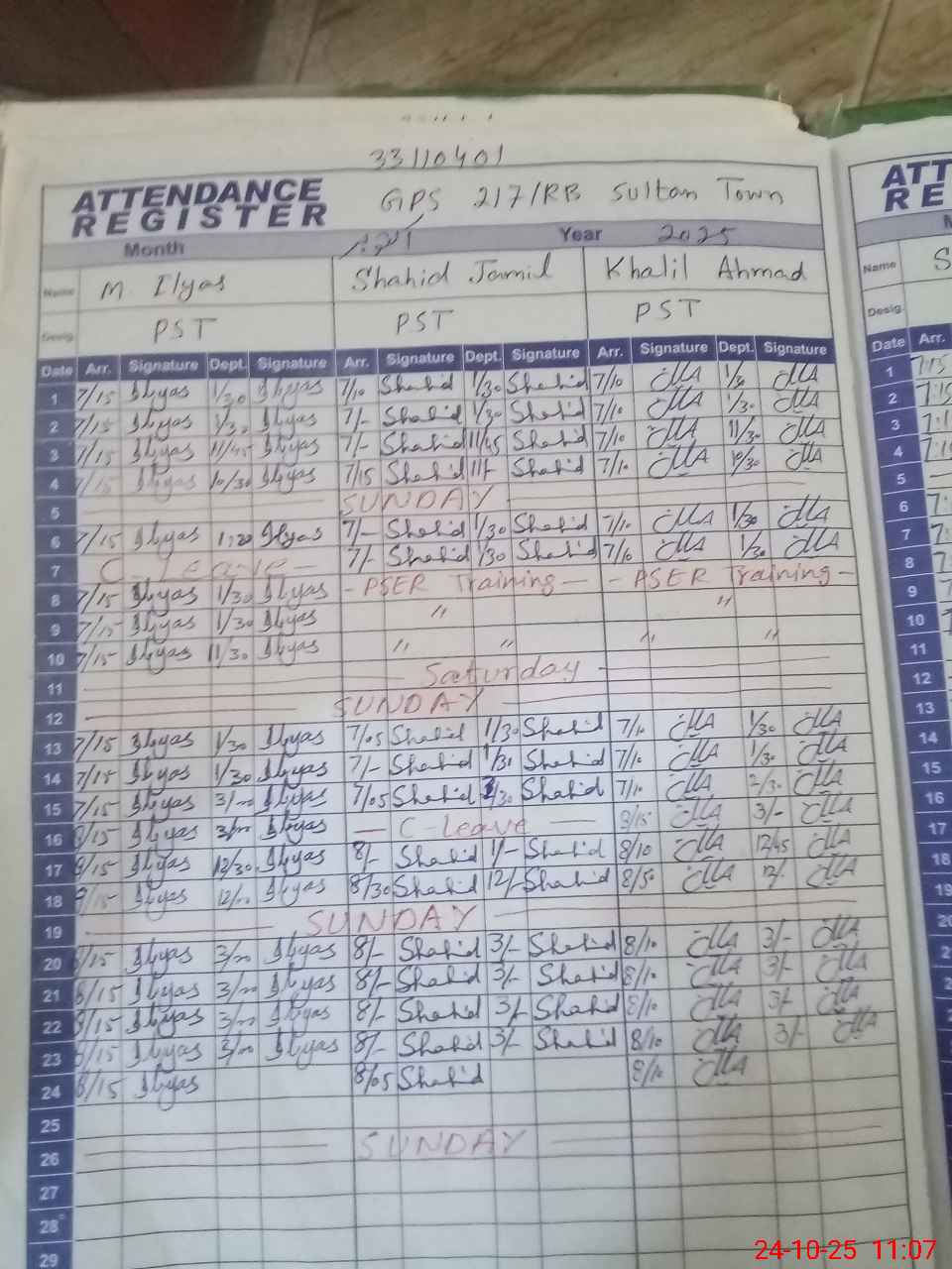 | CNIC | Full Name | Designation | R/C | Absence During Last Calender Month |