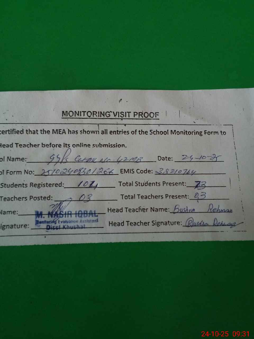| EMIS Code: 38210764 | Name of School: GGPS CHAK NO 42 MB | |||