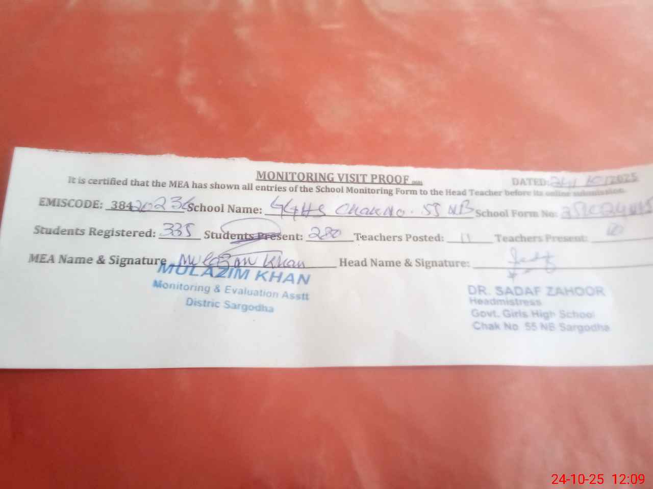 | EMIS Code: 38420236 | Name of School: GGHS CHAK NO.55 NB | |||