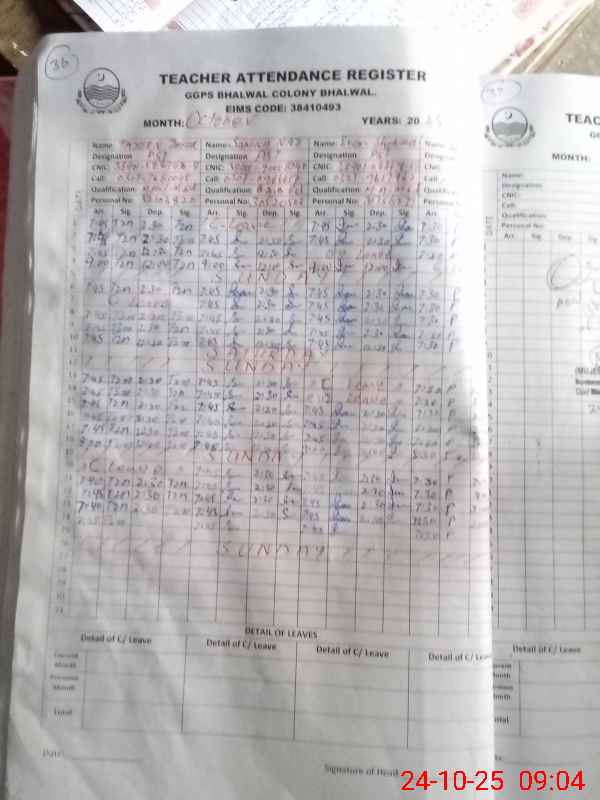 | EMIS Code: 38410493 | Name of School: GGPS BHALWAL COLONY | |||
