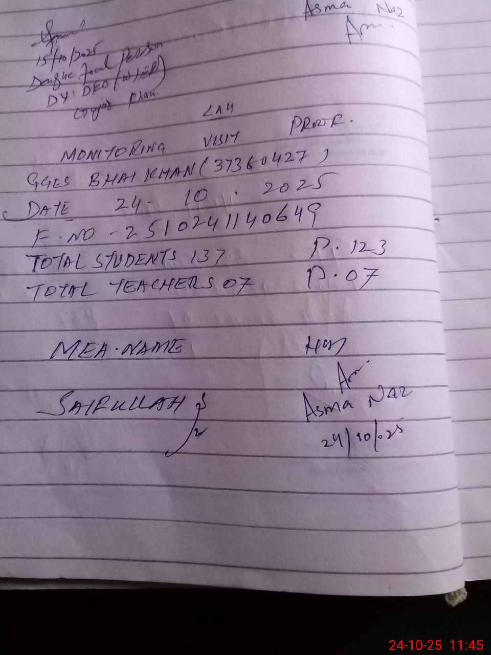 | Certified that this School was Inspected by the Undersigned MEA/DMO Today and the Information Stated Above is as Per Record. | |||||