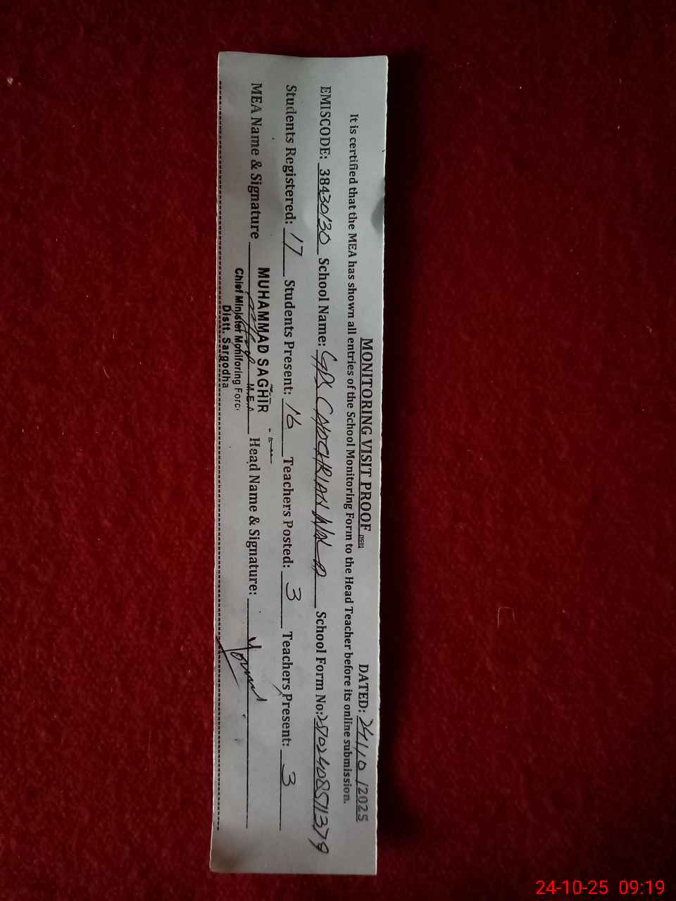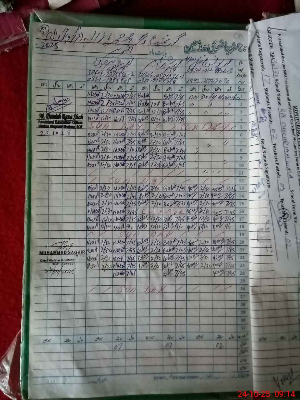 | EMIS Code: 38430130 | Name of School: GPS CHOCHRIAN WALA | |||