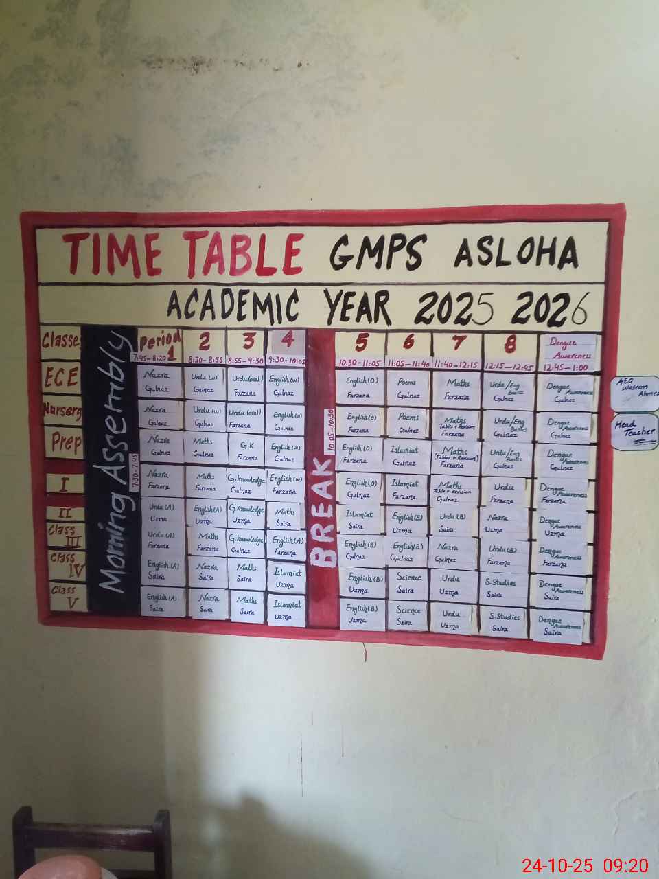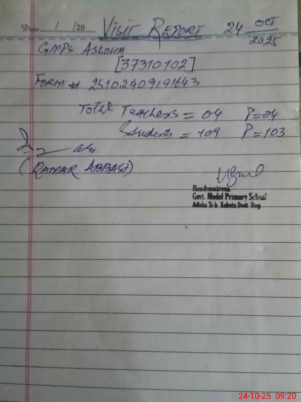 | Attendance Register | Head Teacher | MEA with School | Visit Proof |