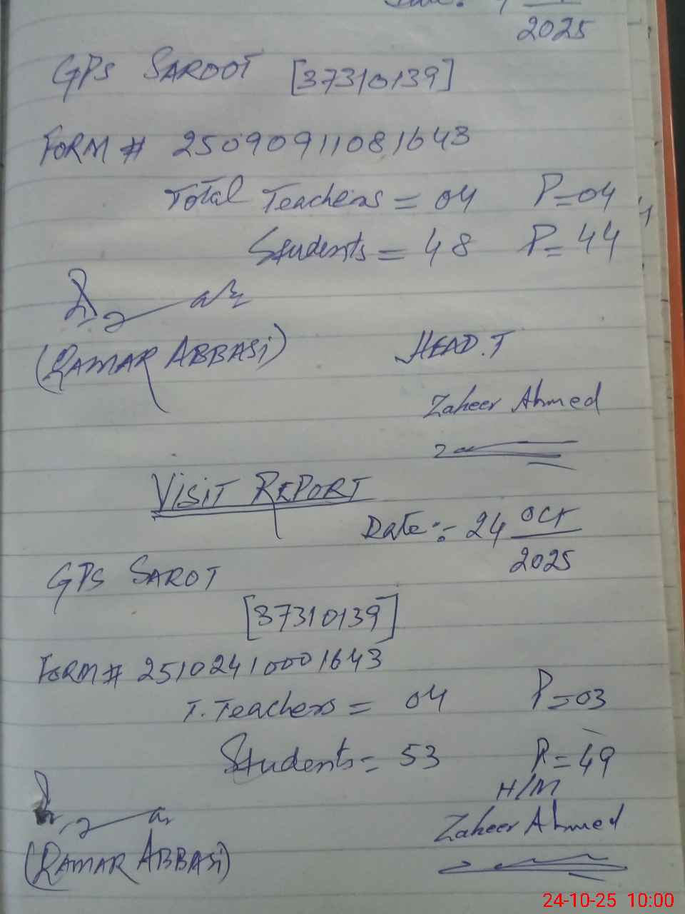 | Attendance Register | Head Teacher | MEA with School | Visit Proof |