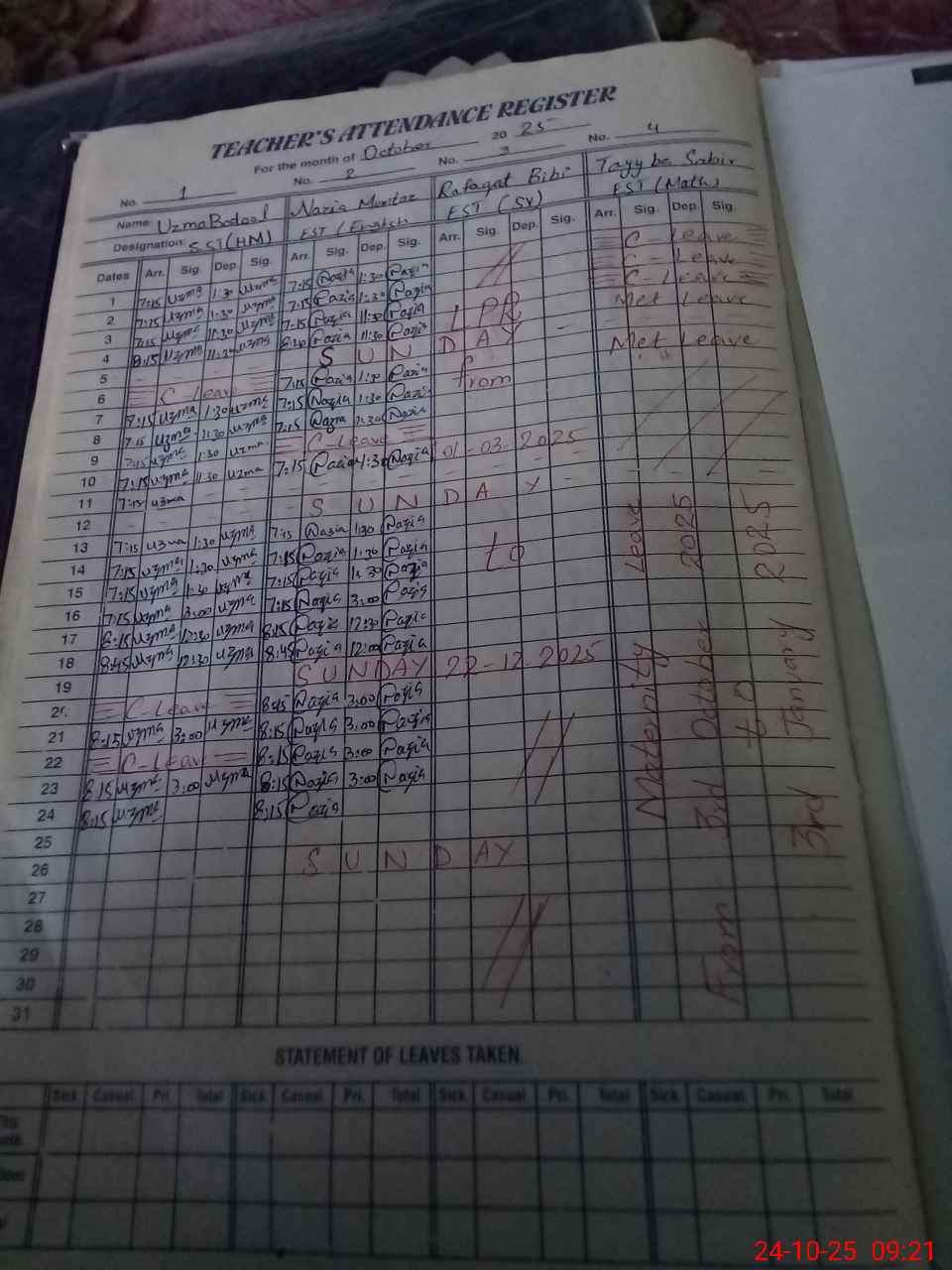 | 37**** | Al**** Ko**** | PST | Regular | 0 | 0 | 0 | 0 | 0 | 0 | 0 | 0 | 0 | Maternity |