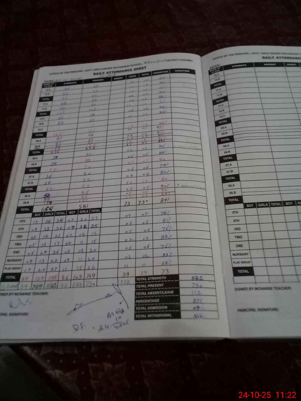 | Total Students Present | 26 | 0 | 20 | 20 | 15 | 16 | 25 | 27 | 45 | 42 | 70 | 126 | 111 | 103 | 84 | 730 |