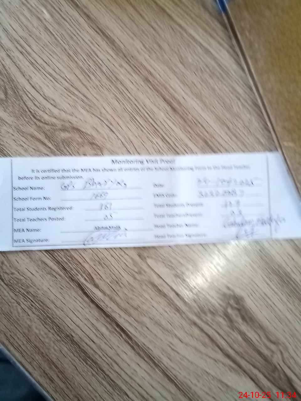 | Certified that this School was Inspected by the Undersigned MEA/DMO Today and the Information Stated Above is as Per Record. | |||||