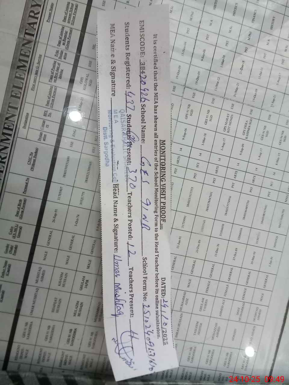 | Certified that this School was Inspected by the Undersigned MEA/DMO Today and the Information Stated Above is as Per Record. | |||||