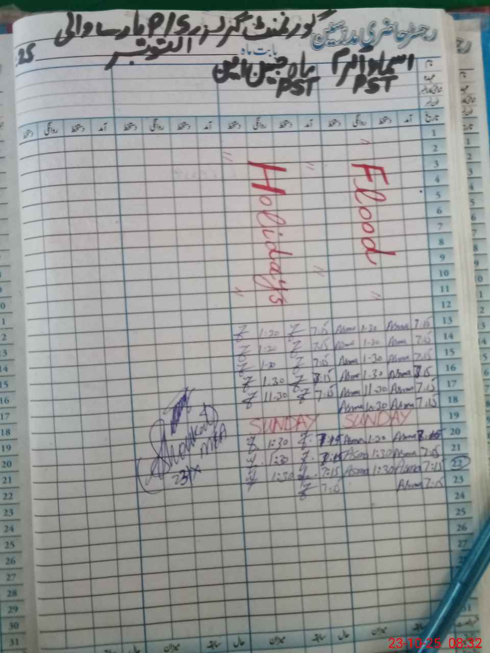 | CNIC | Full Name | Designation | R/C | Absence During Last Calender Month |